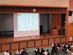 体育館で行われた進路説明会では、進路主任がお話をさせていただきました!
