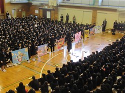 4月8日2校時に対面式が行われました!生徒代表のあいさつののち、クラスボールの贈呈が行われました!同じ六角橋中の生徒として、仲良くお互いを高めあえますよう!