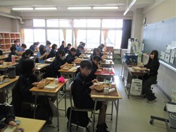 3月19日、2年生の百人一首大会が行われました!真剣に札を取り合います!…読み手が気になりますね。