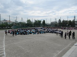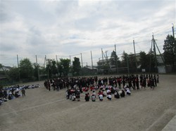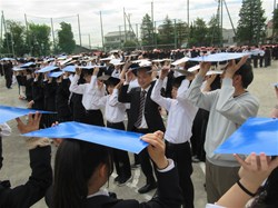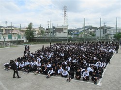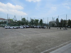 4月15日午前中、80周年記念の航空写真を撮影しました!グランドいっぱいに生徒が広がって、絵を作っていきます。頭上に色紙を乗せるので、集合写真も撮影します。出来上がりが楽しみです!