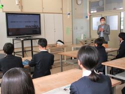 1年生キャリア教育の一環で、職業人に学ぶ会が開かれました。地域の事業所に協力を得て、その道のプロから職業観と、その職業に就くための必要なスキルを伺いました。ある方は相手の方が喜んでくれるのはもちろんですが、地域や社会の問題を自分たちの会社や自分の力で解決できる手伝いができることにやりがいを感じていると伝えていました。また、本校OBの方が講師として来校していました。