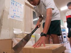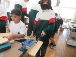 1年技術は、木材製品づくりを進めています。各作業工程が終わったら、振り返りをロイロノートに入力するようにしています。どんな道具類を使ったか、どのように気を付けて作業したか、どんなポイントがあったのか、作業の様子が分かるように具体的にまとめましょう。