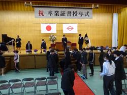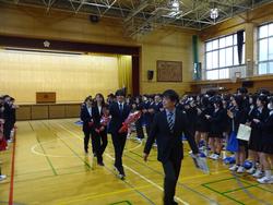 卒業証書授与式が感動的に終わり、保護者や地域の方々に見送られみどり学年の生徒が巣立っていきました。