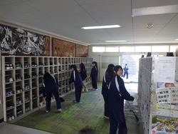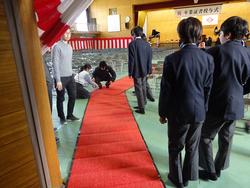 翌日の卒業式に向け、在校生が準備しています。先輩の晴れの日を盛大に行うために…