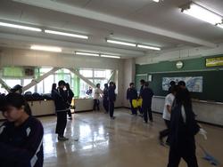 予告なしの抜き打ち避難訓練を実施しました。緊急放送が流れてたときに、冷静に判断して身を守る態勢をとっている生徒が多かったです。