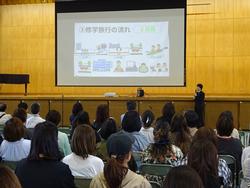授業参観と各学年の校外学習等説明会が行われました。2年生では生徒実行委員が保護者に向けプレゼンをしていました。