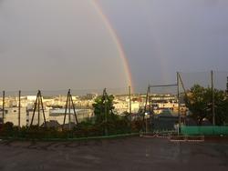 保護者向け部活動説明会が行われました。明日から1年生が正式入部となります。夕方にはなんともきれいな虹が現れました。