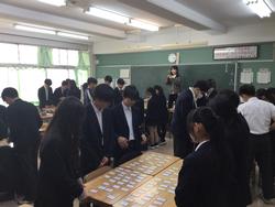3年学活では、百人一首の練習です。下の句が読みだされると手が動くかるた状態です。記憶を呼び戻し、上の句でスパっと取れるように練習しましょう。