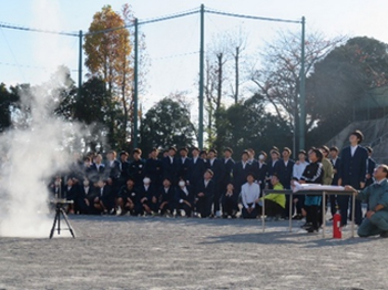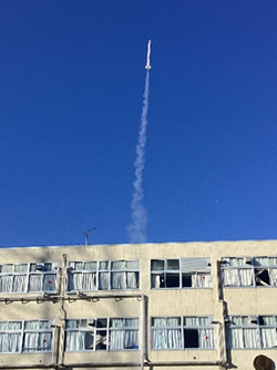 「夢を大切に、あきらめないで」という思いを乗せた3基のロケットが空高く打ち上げられ、校舎を越えていきました。