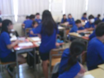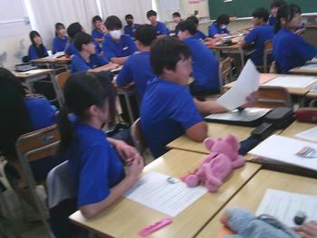 3年生の英語では、関係代名詞を使って、クイズを作り、発表しながらクラスで答え合わせをしていました。簡単すぎず、みんなが答えられるような問題を適切に作っていて、感心したのと同時に、世代の差を感じました。しずかちゃんが出てくるマンガといえば、○○え○○しか知りませんが、今は他にもあるそうです。
