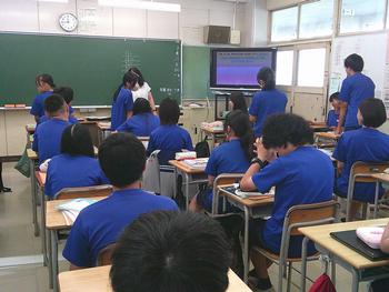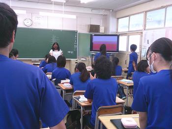 3年生の英語では、AETの先生が、関係代名詞を使ったクイズをいくつか用意し、列対抗でクイズ大会を行っていました。その後、グータッチ等、いろいろな挨拶について説明があり、楽しそうに子どもたち同士で実践していました。グータッチの英語は山中3年生に聞いてください。
