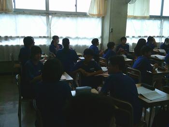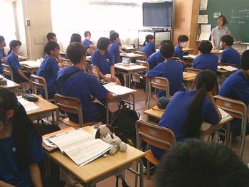 2年生の英語では、不定詞を使ったりしながら、仲間に説明し、何について説明しているかを仲間が当てるという活動をしていました。「うどん」や「制服」等について、自分たちの知っている英語を駆使しながら、何とか理解してもらおうと頑張っていました。当てる方も、When do we use?など、質問しながら理解を深めていて、素晴らしいと思いました。