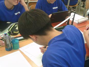 3年生の理科では、標記について、小グループで実験を行いながら、関係性を明らかにしていました。目を輝かせながら、楽しそうに実験をしていました。実験結果から標記についてまとめるのは簡単ではありませんが、グループで協力して、全員が理解できるようにしてほしいと思います。