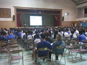 10月16日、進路説明会を行いました。まず合唱練習ということで3年生が「旅立ちの日に」を歌いました。保護者のみなさまの温かい拍手、ありがとうございました。さて3年生は、どこに旅立つか、進路選択をしなければなりません。自分の人生に責任をもてるように、「なんとなく」ではなく、根拠と自信をもって進路選択し、実現に向けて学年の絆を大切にしながら博学篤志してほしいと思います。BIGBOSSは応援しています。