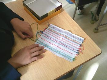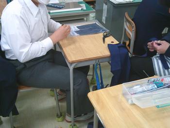 個別支援学級では、刺繍の様々なステッチを活用して、作品を仕上げていました。ランニングステッチやチェーンステッチなど、様々なステッチがあることを私も学びました。エプロンを作っている生徒もいて、ボタン付けやアイロンがけを熱心にしていました。個性豊かな作品の完成が楽しみです。