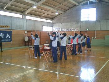 個別支援学級では、合同学芸会に向け、和太鼓の練習を格技場で行っています。元気のよい太鼓の音と掛け声が、校長室まで響いてきます。異動しながら太鼓を叩いたり、掛け声に合わせて太鼓を叩いたり、叩くスピードを変えたりと、いろいろな工夫が見られました。合同学芸会の本番が楽しみになりました。
