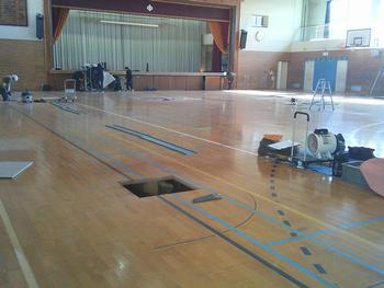 11月17日から、工事がスタートしました。ステージの床の張替もしますので、グランドピアノの移動等、大変そうでした。工事の完成は、1月中を予定しています。体育館で行っていた部活動は、新石川小学校と元石川小学校の体育館をお借りして行います。皆様のご理解とご協力に感謝しております。