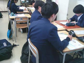 3年生の社会科では、なじみ深い昔話をモチーフにしたNHK法廷ドラマを視聴し、判決についてグループで話し合いをしていました。さすが山内中学校3年生、真剣に根拠を示しながら話し合うことを楽しんでいました。
