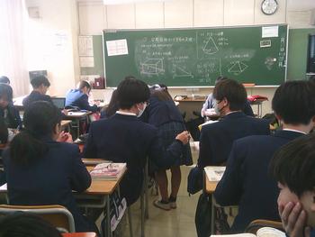 3年生の数学では、円錐や四角錐の体積を求める難しい問題にチャレンジしていました。仲間と一緒に考えてながら、正解を導いていました。BIGHBOSSとしては、先生の説明が1番分かりやすいと思いますが、子どもたちにとっては仲間の説明が分かりやすいと感じることがあります。これが、子どもの不思議です。