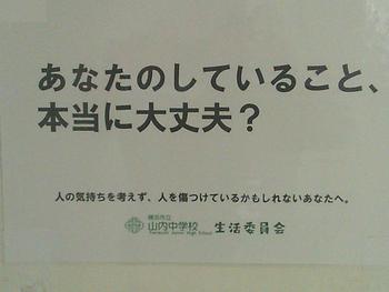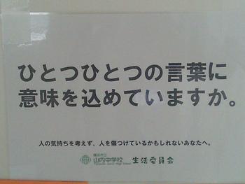 1年生の生活委員会では、生徒のいじめアンケート結果をもとに、学年の課題を把握し、課題解決に向けた取組として、生活委員会で考えた標語を廊下に掲示しています。自分たちの生活を振り返り、誰もが安心して豊かに生活を送るために頑張っている生活委員会のみなさん、ありがとうございます。