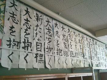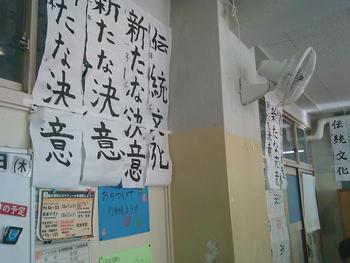 1年生は「伝統文化」「新たな決意」、2年生は「大志を抱く」「新たな目標」、3年生は「伝統を守る」「旅立ちの春」を書きました。子どもたちが、どんな気持ちや思いで書初めを書いたのかを想像すると、令和8年の山内中学校が楽しみになりました。1年生と2年生は、新しいチャレンジに、3年生は卒業式まであとわずか。後輩に素晴らしい伝統を引き継いでほしいと思います。