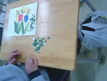 個別支援学級では、令和8年度のカレンダーを切り絵で作成しています。一人ひとりが、担当の月を切り絵で上手に表現しています。細かい作業ですが、ピンセットやハサミを使いこなしながら、集中して作業を進めていました。世界に一つだけのカレンダーの完成が楽しみです。