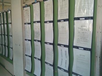 2年生の廊下には、子どもたちが選んだ英語の名言やことわざの意味や解説等をまとめたものが掲示されています。例えば、