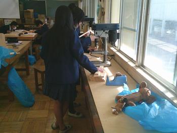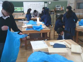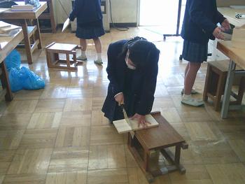 1年生の技術科では、本棚を製作しています。設計図を確認しながら、仲間と相談したり、協力したりしながら、主体的に取り組み、楽しそうに作業を進めていました。のこぎりや金づちを上手に使っている生徒いましたので、「学びはまねび」、まねしてほしいと思いました。完成が楽しみです。