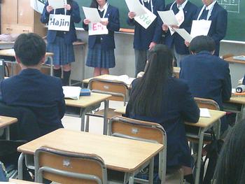 2年生の英語では、グループで教科書の登場人物になりきって、音読発表を行っていました。教科書の内容や登場人物の心情を理解しながら行うなりきり音読は、英語学習においてとても効果的です。声色やジェスチャーを工夫したりしながら、なりきり音読を楽しんでいるようでした。