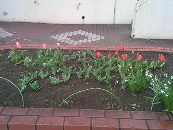 花壇では、個別支援学級の生徒が植えてくれたチューリップが咲き始めました。PTA学年委員さんや地域コーディネーターさんが植えてくれた花も、きれいに咲いています。入学式に向けた準備ができているようです。