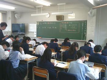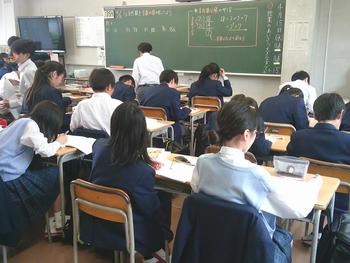 1年生の教室を回っていると、「あっ、BIGBOSSだ。こんにちは。」と手を振るなど、気持ちのよい反応をしてくれます。1年生の数学では、自然数を素数の積にする課題に取り組んでいました。例えば12は2×2×3になります。256は、大変そうですが、「やってみたら、気持ちがよい。」という声が上がっていました。熱心に学ぼうとしている姿に、見ている方も気持ちがよくなりました。