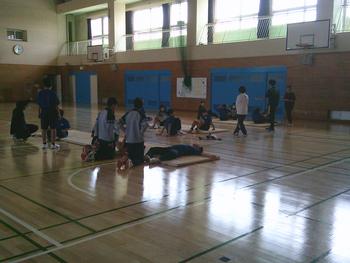 個別支援学級では、体力づくりを行っていました。時間内に何回腹筋ができるかにチャレンジしていました。終わった後は、もう体力が残っていないのか、マットに大の字になっていました。全力で挑戦する山中生、さすがです。