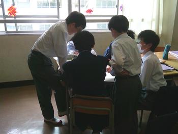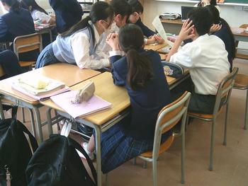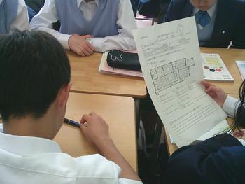 1年生の家庭科では、家の間取りを見ながら、何のための空間なのかを分類していました。班のメンバーと協力しながら、熱心に取り組んでいました。身を乗り出しながら、話し合いの望んでいる姿勢から、子どもたちの学習意欲が伝わってきます。1年生も博学篤志しています。