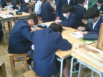 2年生の美術では、方向の異なる線を交差させ。物体の明暗を調節したり、物体の質感を出したりする技法、クロスハッチングの練習をしていました。先生にアドバイスをもらいながら、集中して作業を進めていました。さすが、山中2年生です。今日から委員会活動、明日から部活動本入部が始まります。これからも1年生の見本になってほしいと思います。