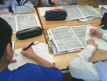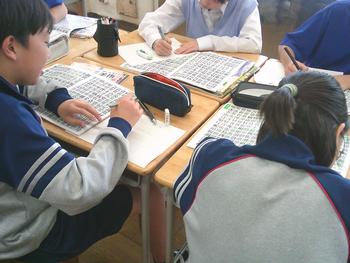 私が美術室に入ると、「BIGBOSS」「品性高潔・博学篤志」と話しかけてくる1年生が何人もいて、驚きました。美術の授業では、自分の名前でレタリングをしていました。教科書や仲間のテクニックを真似しながら、素晴らしいレタリングを完成させてほしいと思います。