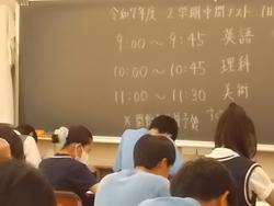 中間試験を行いました。1日目は英語・理科・美術(と1学年は音楽)、2日目は国語・数学・社会のテストです。だれもが集中して真剣に取り組んでいました。