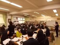先日の2学年に続き、1学年でも百人一首大会を行いました。生徒たちは、これまでの練習の成果を発揮しようと、真剣に札に向かっていました。