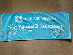 創立50周年記念品としてワンタッチテントが2台届きました。金属部分がオールアルミ製なのでプールサイドでも使えます。これから大切に活用していきます。なお在校生には、記念式典の日に記念のタオルが渡されました。