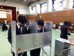 演説会後には投票が行われ、生徒一人ひとりが学校の未来について考え、真剣な表情で一票を投じていました。