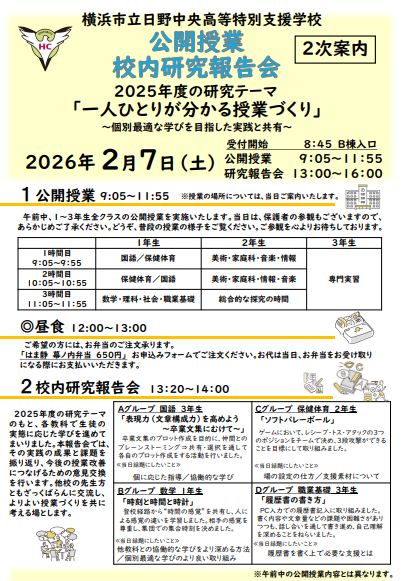 令和7年度 公開授業・校内研究報告会の2次案内のお知らせです。