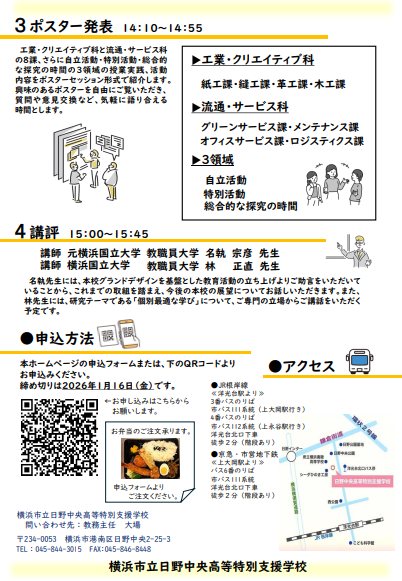 *午前中の公開授業につきまして、本校在校生の保護者の申し込みは不要です。